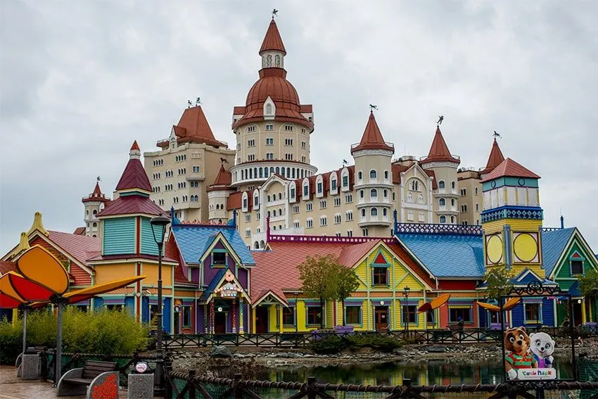 Отель-замок Богатырь позволяет отелю-замку по праву считаться идеальным местом для семейного отдыха с детьми. В первую очередь благодаря тому, что отель, единственный в нашей стране, находится на территории первого в России тематического парка «Сочи Парк», входящего в топ-20 лучших развлекательных парков Европы. В шаговой доступности также Олимпийский парк, железнодоржная станция, около десяти минут займет путь до аэропорта Адлера.